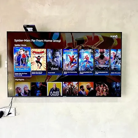 The apartment has a balcony and a fully equipped kitchen, and comforts such as an air conditioner.